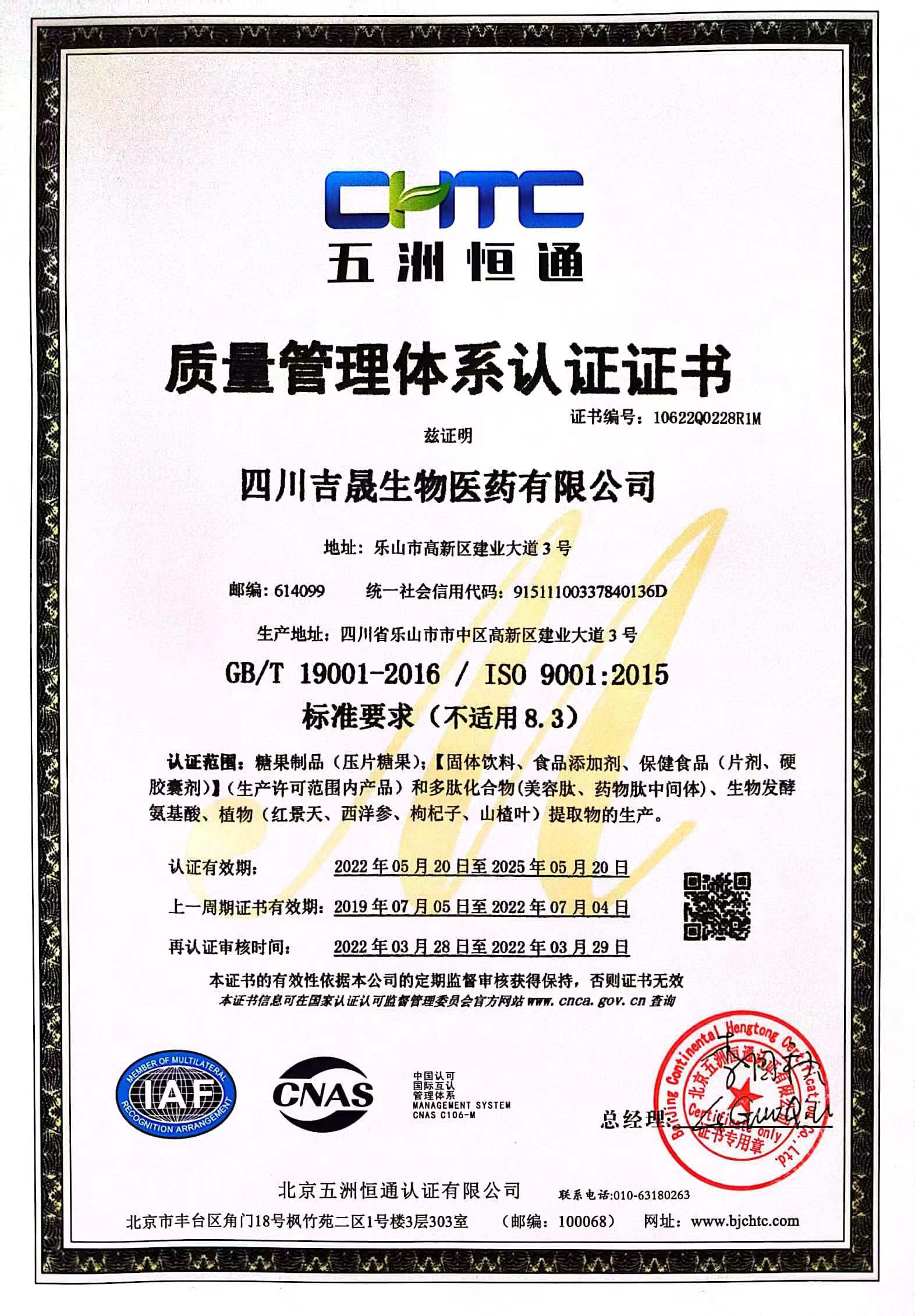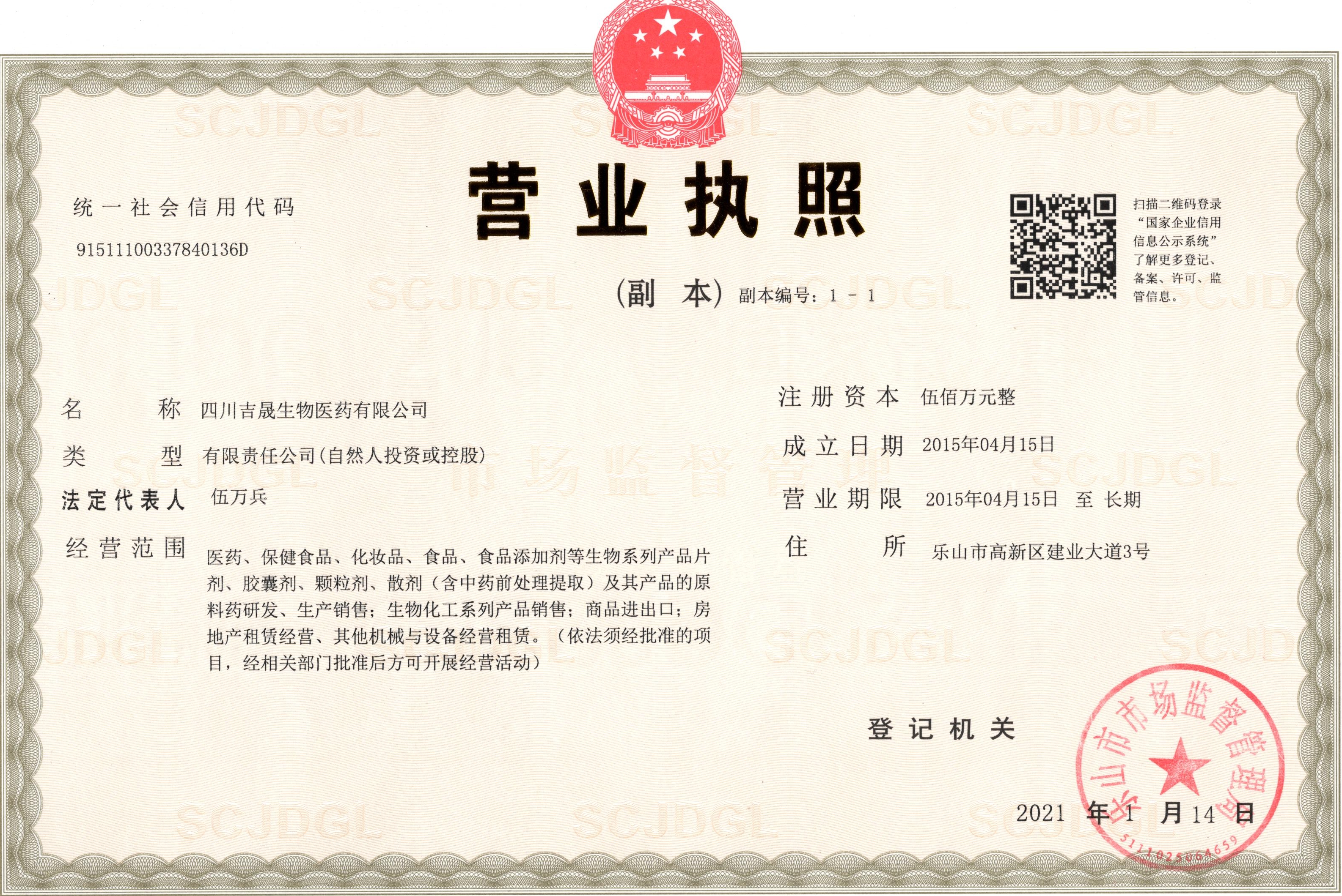 四川吉晟生物醫(yī)藥有限公司成立于2015年,位于四川樂(lè)山高新技術(shù)開(kāi)發(fā)區(qū),工廠(chǎng)占地面積6萬(wàn)多平方米,是一家集產(chǎn)品研發(fā)、生產(chǎn)、銷(xiāo)售為一體的國(guó)家高新技術(shù)企業(yè),通過(guò)了ISO9001、Kosher質(zhì)量認(rèn)證,2022年榮獲樂(lè)山市首家“瞪羚企業(yè)”。